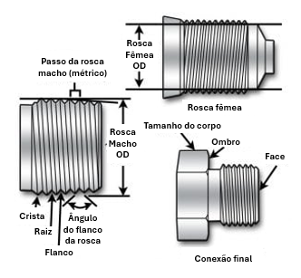 Como as conexões roscadas são frequentemente utilizadas para fixar mecanicamente um dispositivo e evitar vazamento de fluido ou gás, é fundamental selecionar o tipo e o padrão de rosca corretos. Usar o formato de rosca errado ou misturar padrões incompatíveis pode resultar em vedação inadequada, roscas danificadas, vazamentos ou falhas prematuras.